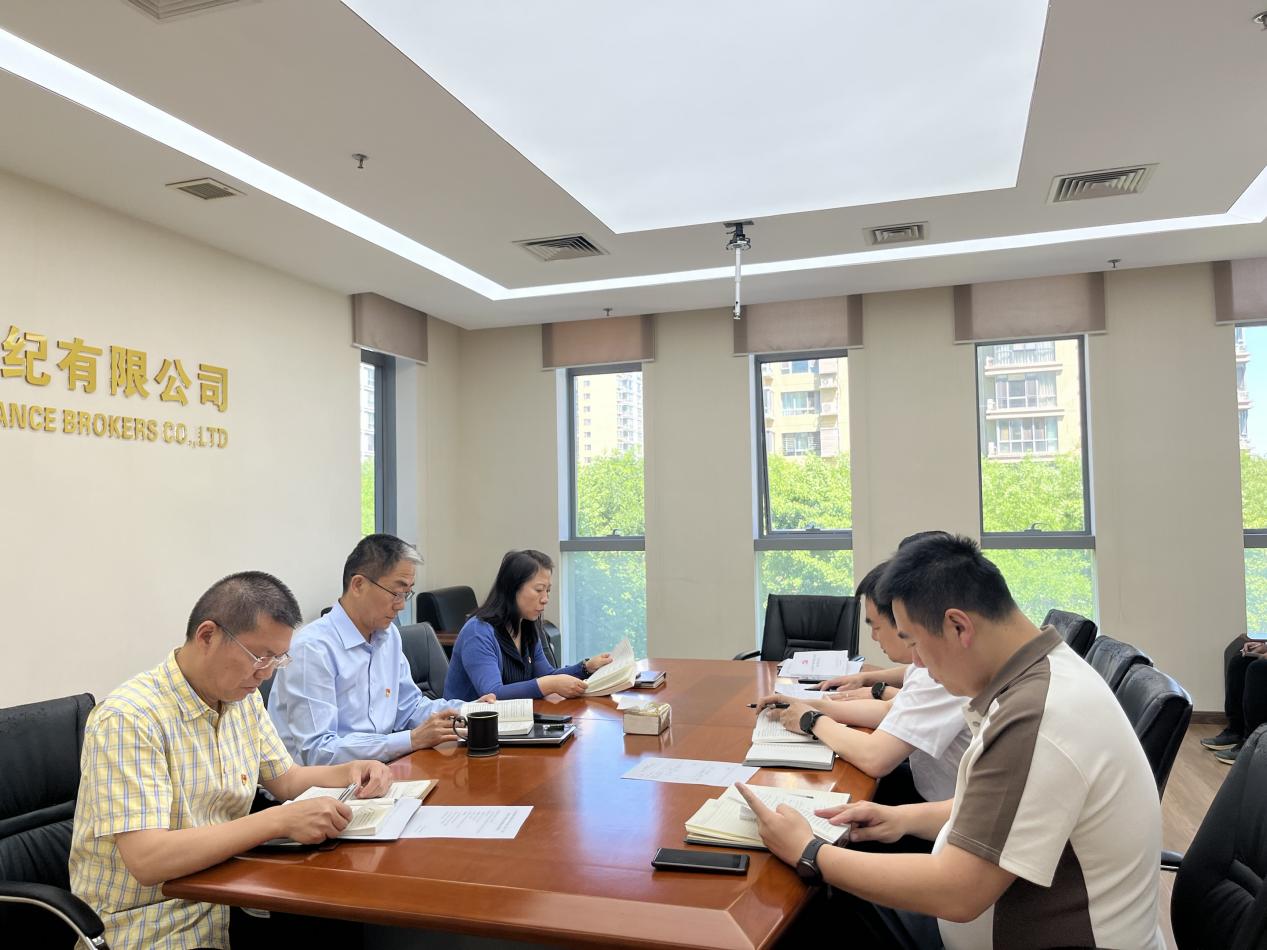 5月15日,,,,,中国有色集团出资企业金晟包管经纪有限公司(简称:中色金晟)党支部举治理论学习中心组党纪学习教育第二期专题念书班,,,,,原原本本、逐条学习《中国共产党纪律处分条例》。。。。。党支部书记、副总司理左跃新主持念书班并作钻研讲话,,,,,执行董事、总司理吴刚作钻研讲话,,,,,其他班子成员领学《条例》部分章节内容。。。。。